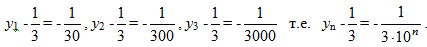 Пример 4. Рассмотрим последовательность у1=0,3; у2=0,33; у3=0,333, … уn неограниченно приближается к